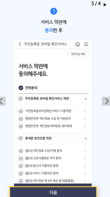 | 2 | 모바일 주민등록증 발급 | 서비스 이용 약관에 동의합니다. |
